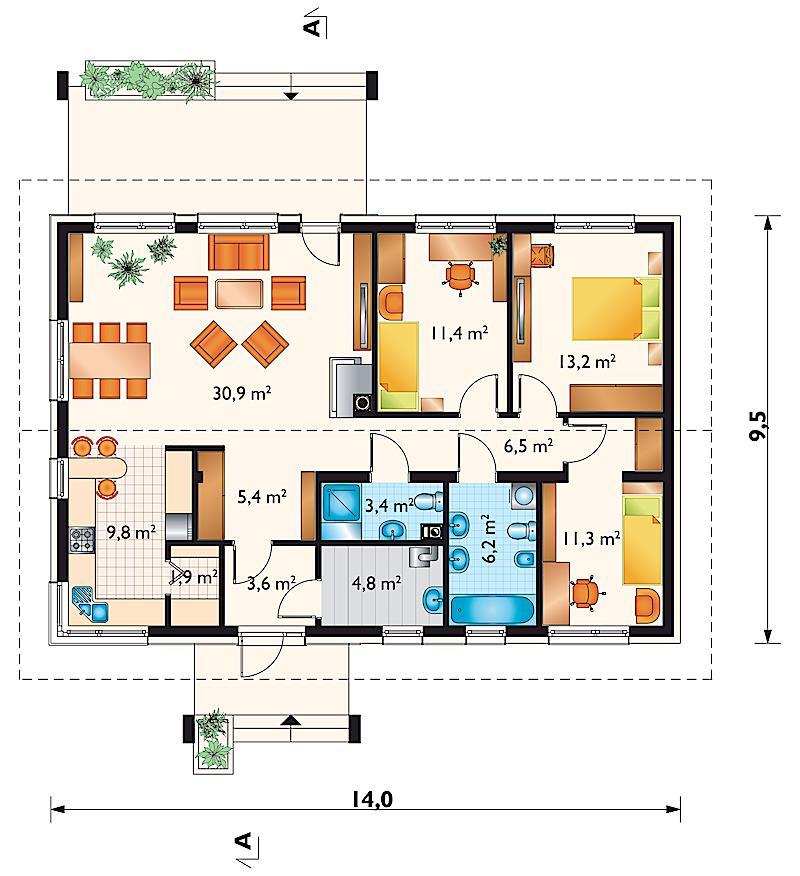 - Šírka domu 14 m