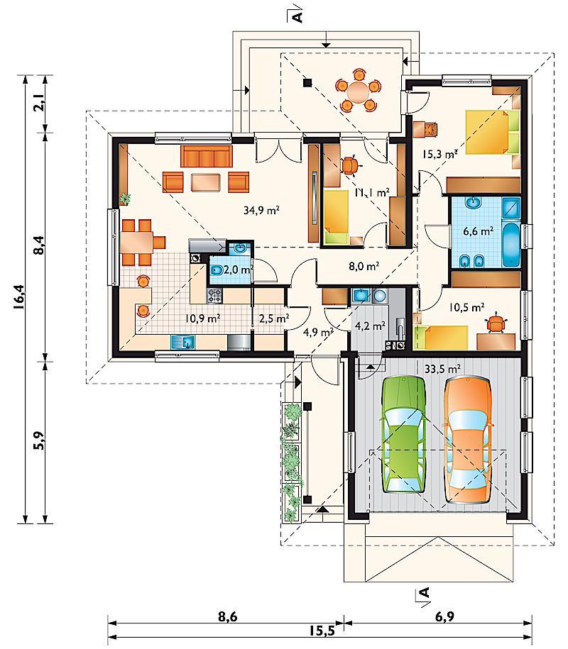 Pri tomto projekte ponúkame MOŽNOSŤ BEZPLATNEJ ZMENY DISPOZÍCIE! Pri každom projekte sme sa snažili vymyslieť tú najlepšiu dispozíciu aká je vzhľadom na vonkajší rozmer domu možná. Ale aj napriek tomu je často potrebné dispozíciu domu upraviť s ohľadom na osadenie domu na pozemok, preferencie klienta alebo stavebný systémn. Ponúkame Vám preto možnosť bezplatnej zmeny dispozície každého nášho projektu tak aby vyhovoval vašim potrebám. Zmenou dispozície myslíme posuny nenostných priečok, zmenu umiestnenia a veľkosti okien, interierových dverí a rozvodov inštalácií.