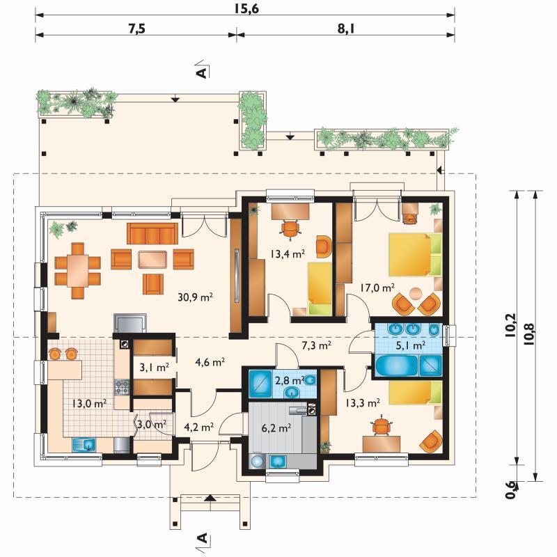 Pri tomto projekte ponúkame MOŽNOSŤ BEZPLATNEJ ZMENY DISPOZÍCIE! Pri každom projekte sme sa snažili vymyslieť tú najlepšiu dispozíciu aká je vzhľadom na vonkajší rozmer domu možná. Ale aj napriek tomu je často potrebné dispozíciu domu upraviť s ohľadom na osadenie domu na pozemok, preferencie klienta alebo stavebný systémn. Ponúkame Vám preto možnosť bezplatnej zmeny dispozície každého nášho projektu tak aby vyhovoval vašim potrebám. Zmenou dispozície myslíme posuny nenostných priečok, zmenu umiestnenia a veľkosti okien, interierových dverí a rozvodov inštalácií.