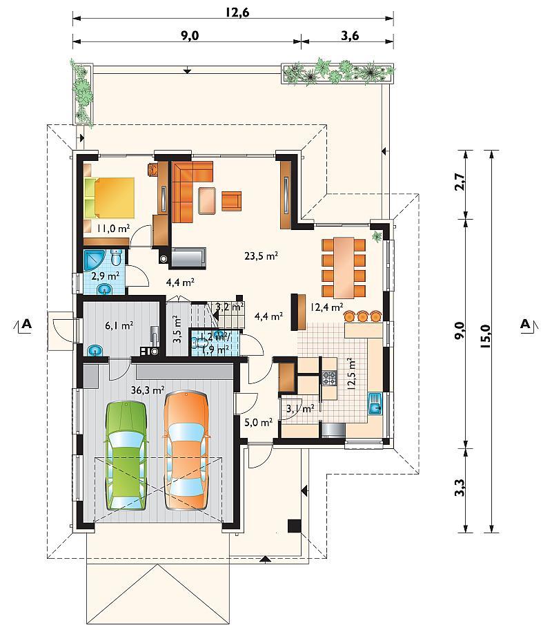 - Šírka domu 12 m