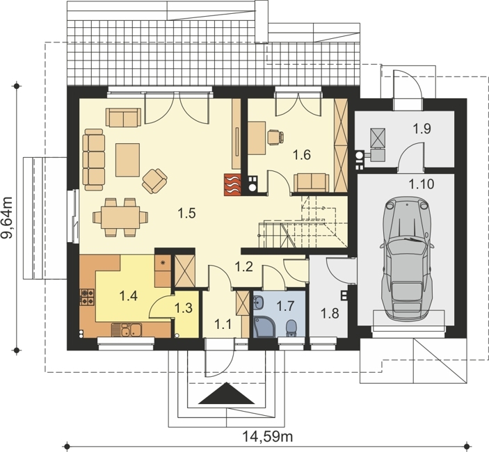 - Šírka domu 14 m