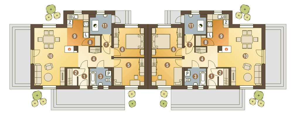Pri tomto projekte ponúkame MOŽNOSŤ BEZPLATNEJ ZMENY DISPOZÍCIE! Pri každom projekte sme sa snažili vymyslieť tú najlepšiu dispozíciu aká je vzhľadom na vonkajší rozmer domu možná. Ale aj napriek tomu je často potrebné dispozíciu domu upraviť s ohľadom na osadenie domu na pozemok, preferencie klienta alebo stavebný systémn. Ponúkame Vám preto možnosť bezplatnej zmeny dispozície každého nášho projektu tak aby vyhovoval vašim potrebám. Zmenou dispozície myslíme posuny nenostných priečok, zmenu umiestnenia a veľkosti okien, interierových dverí a rozvodov inštalácií.
