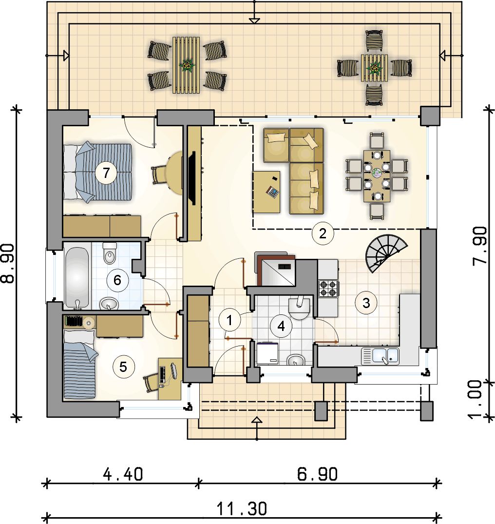 Pri tomto projekte ponúkame MOŽNOSŤ BEZPLATNEJ ZMENY DISPOZÍCIE! Pri každom projekte sme sa snažili vymyslieť tú najlepšiu dispozíciu aká je vzhľadom na vonkajší rozmer domu možná. Ale aj napriek tomu je často potrebné dispozíciu domu upraviť s ohľadom na osadenie domu na pozemok, preferencie klienta alebo stavebný systémn. Ponúkame Vám preto možnosť bezplatnej zmeny dispozície každého nášho projektu tak aby vyhovoval vašim potrebám. Zmenou dispozície myslíme posuny nenostných priečok, zmenu umiestnenia a veľkosti okien, interierových dverí a rozvodov inštalácií.