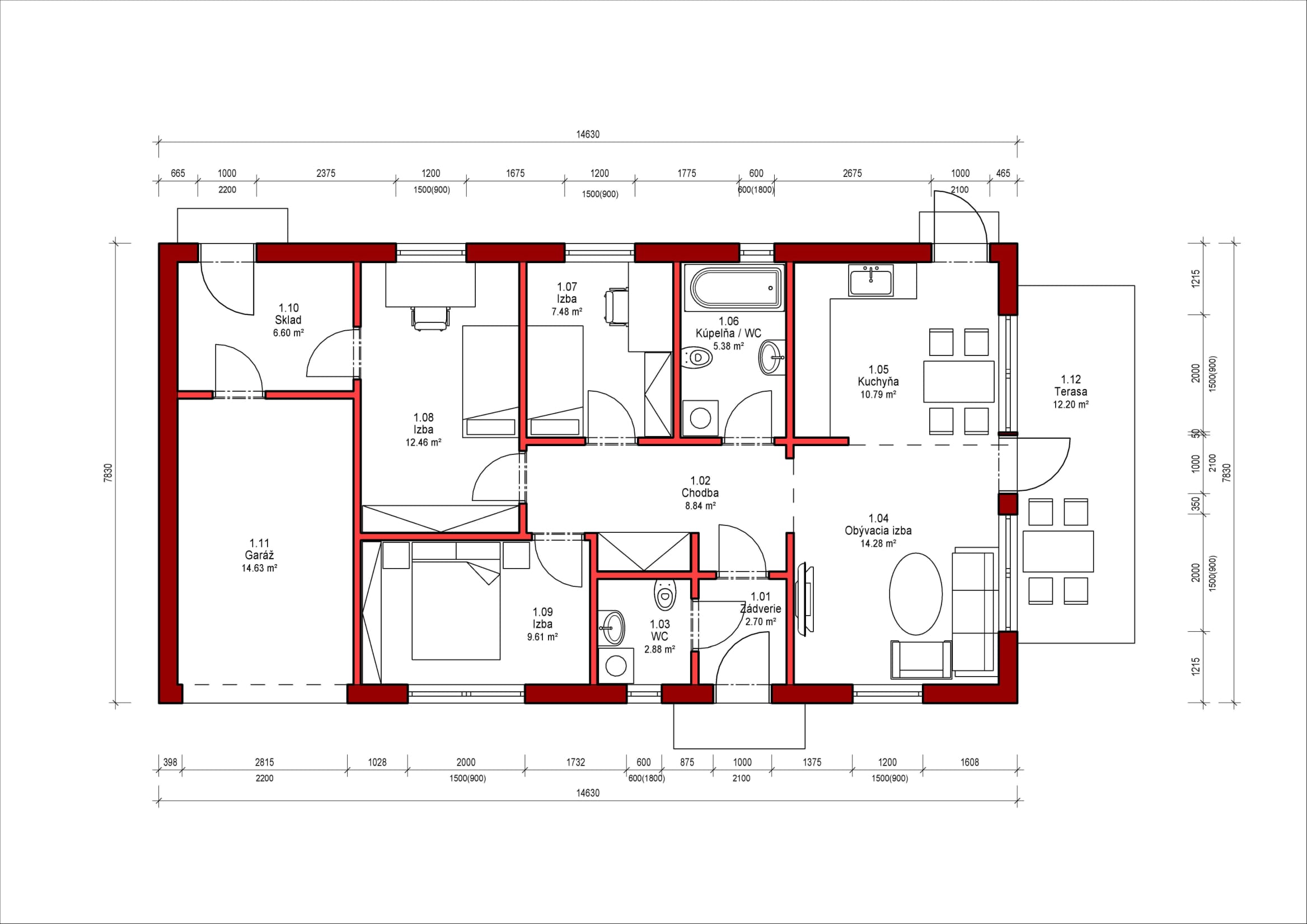 • Zastavaná plocha domu 114 m2