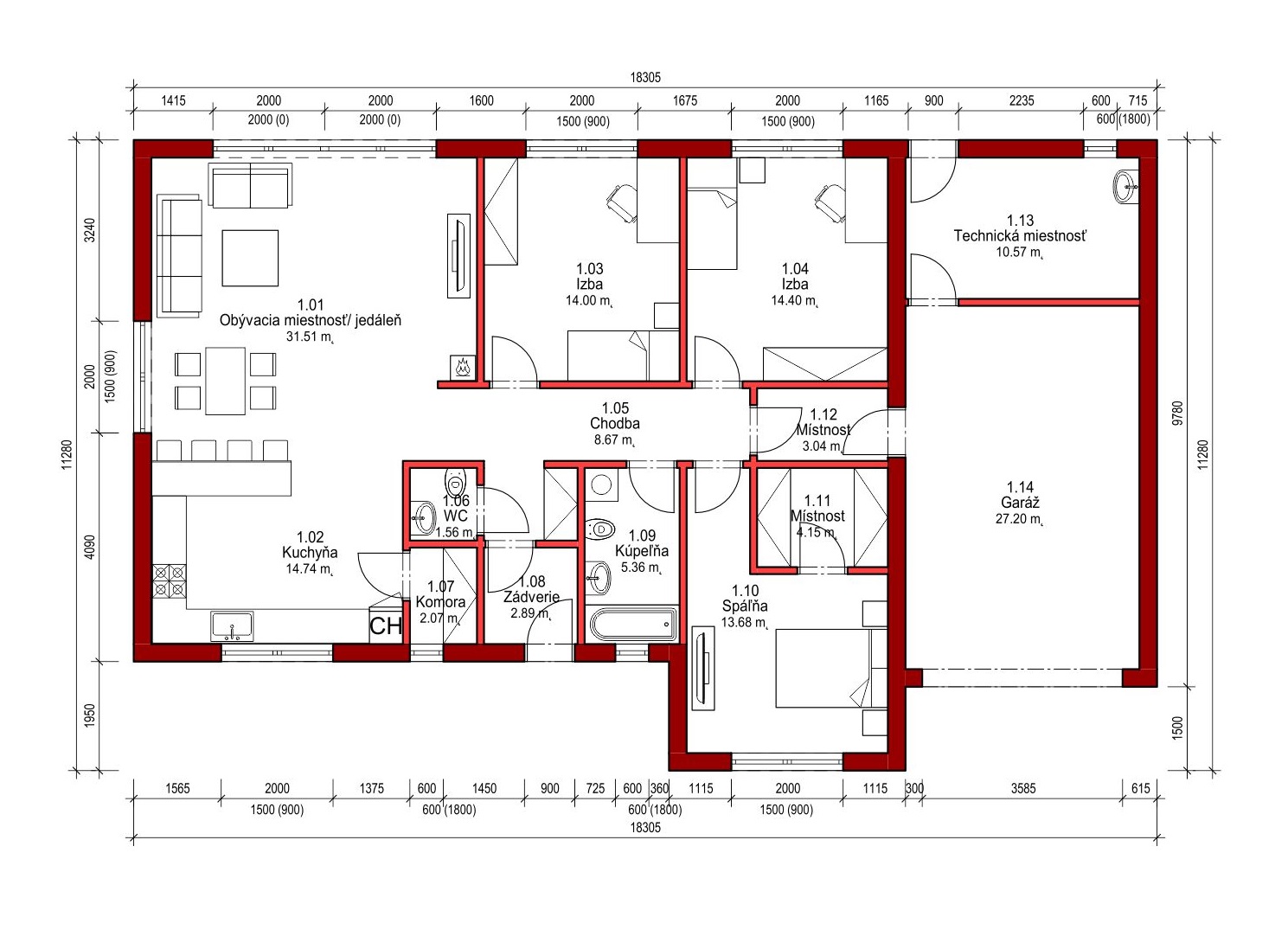Pri tomto projekte ponúkame MOŽNOSŤ BEZPLATNEJ ZMENY DISPOZÍCIE! Pri každom projekte sme sa snažili vymyslieť tú najlepšiu dispozíciu aká je vzhľadom na vonkajší rozmer domu možná. Ale aj napriek tomu je často potrebné dispozíciu domu upraviť s ohľadom na osadenie domu na pozemok, preferencie klienta alebo stavebný systémn. Ponúkame Vám preto možnosť bezplatnej zmeny dispozície každého nášho projektu tak aby vyhovoval vašim potrebám. Zmenou dispozície myslíme posuny nenostných priečok, zmenu umiestnenia a veľkosti okien, interierových dverí a rozvodov inštalácií.