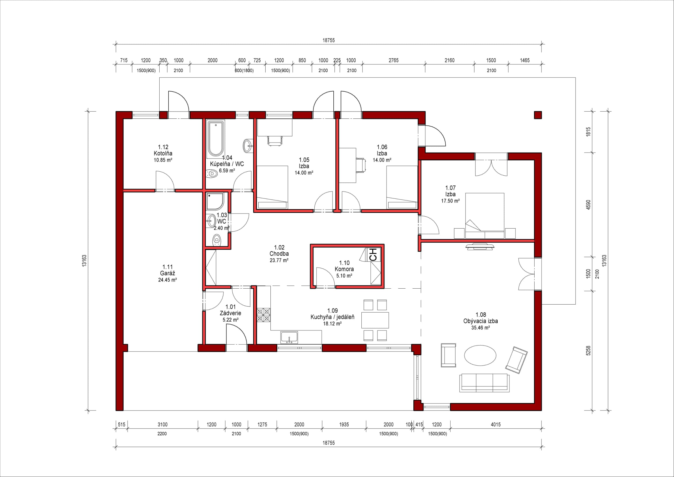 Pri tomto projekte ponúkame MOŽNOSŤ BEZPLATNEJ ZMENY DISPOZÍCIE! Pri každom projekte sme sa snažili vymyslieť tú najlepšiu dispozíciu aká je vzhľadom na vonkajší rozmer domu možná. Ale aj napriek tomu je často potrebné dispozíciu domu upraviť s ohľadom na osadenie domu na pozemok, preferencie klienta alebo stavebný systémn. Ponúkame Vám preto možnosť bezplatnej zmeny dispozície každého nášho projektu tak aby vyhovoval vašim potrebám. Zmenou dispozície myslíme posuny nenostných priečok, zmenu umiestnenia a veľkosti okien, interierových dverí a rozvodov inštalácií.