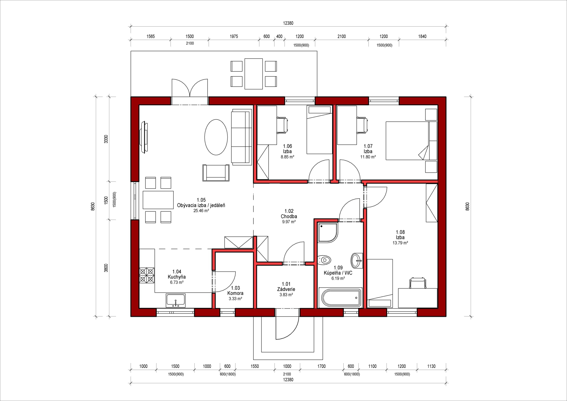 Pri tomto projekte ponúkame MOŽNOSŤ BEZPLATNEJ ZMENY DISPOZÍCIE! Pri každom projekte sme sa snažili vymyslieť tú najlepšiu dispozíciu aká je vzhľadom na vonkajší rozmer domu možná. Ale aj napriek tomu je často potrebné dispozíciu domu upraviť s ohľadom na osadenie domu na pozemok, preferencie klienta alebo stavebný systém. Ponúkame Vám preto možnosť bezplatnej zmeny dispozície každého nášho projektu tak aby vyhovoval vašim potrebám. Zmenou dispozície myslíme posuny nenosných priečok, zmenu umiestnenia a veľkosti okien, interiérových dverí a rozvodov inštalácií.