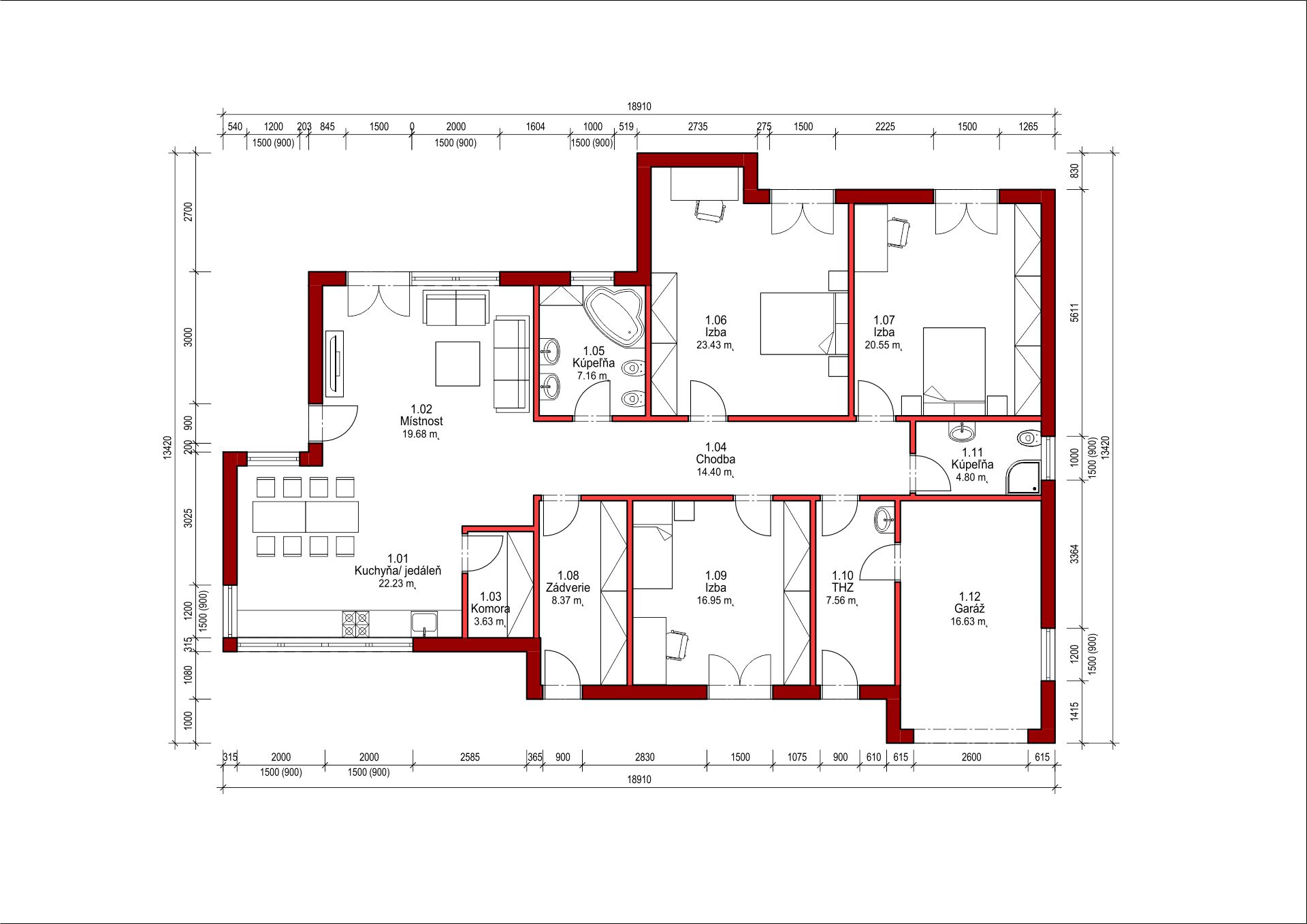 - Zastavaná plocha domu 186 m2