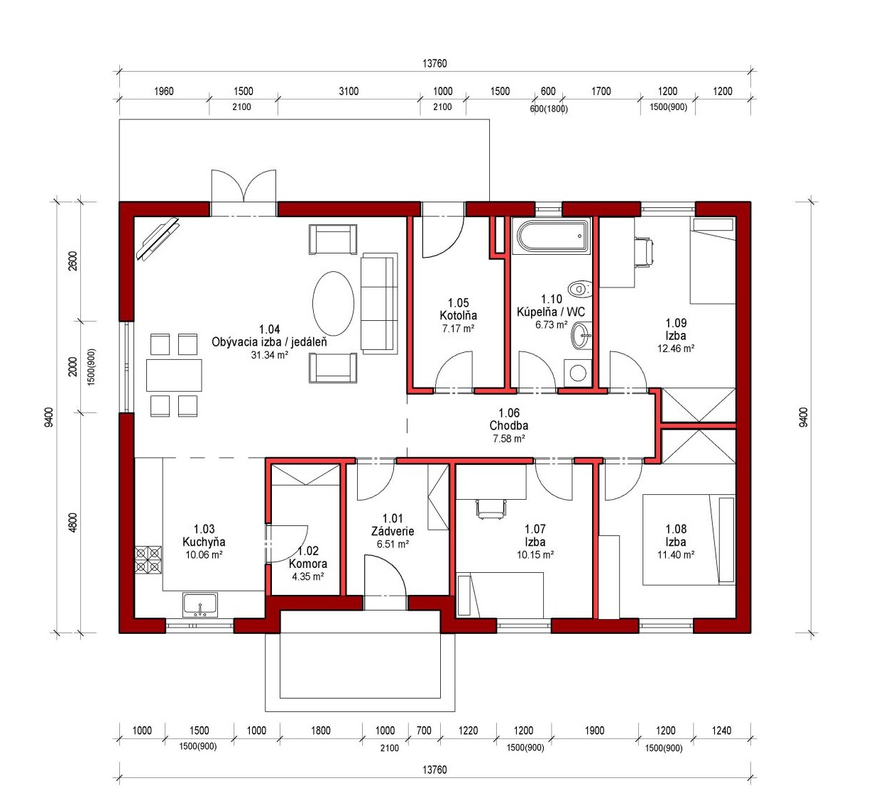 Pri tomto projekte ponúkame MOŽNOSŤ BEZPLATNEJ ZMENY DISPOZÍCIE! Pri každom projekte sme sa snažili vymyslieť tú najlepšiu dispozíciu aká je vzhľadom na vonkajší rozmer domu možná. Ale aj napriek tomu je často potrebné dispozíciu domu upraviť s ohľadom na osadenie domu na pozemok, preferencie klienta alebo stavebný systém. Ponúkame Vám preto možnosť bezplatnej zmeny dispozície každého nášho projektu tak aby vyhovoval vašim potrebám. Zmenou dispozície myslíme posuny nenosných priečok, zmenu umiestnenia a veľkosti okien, interiérových dverí a rozvodov inštalácií.