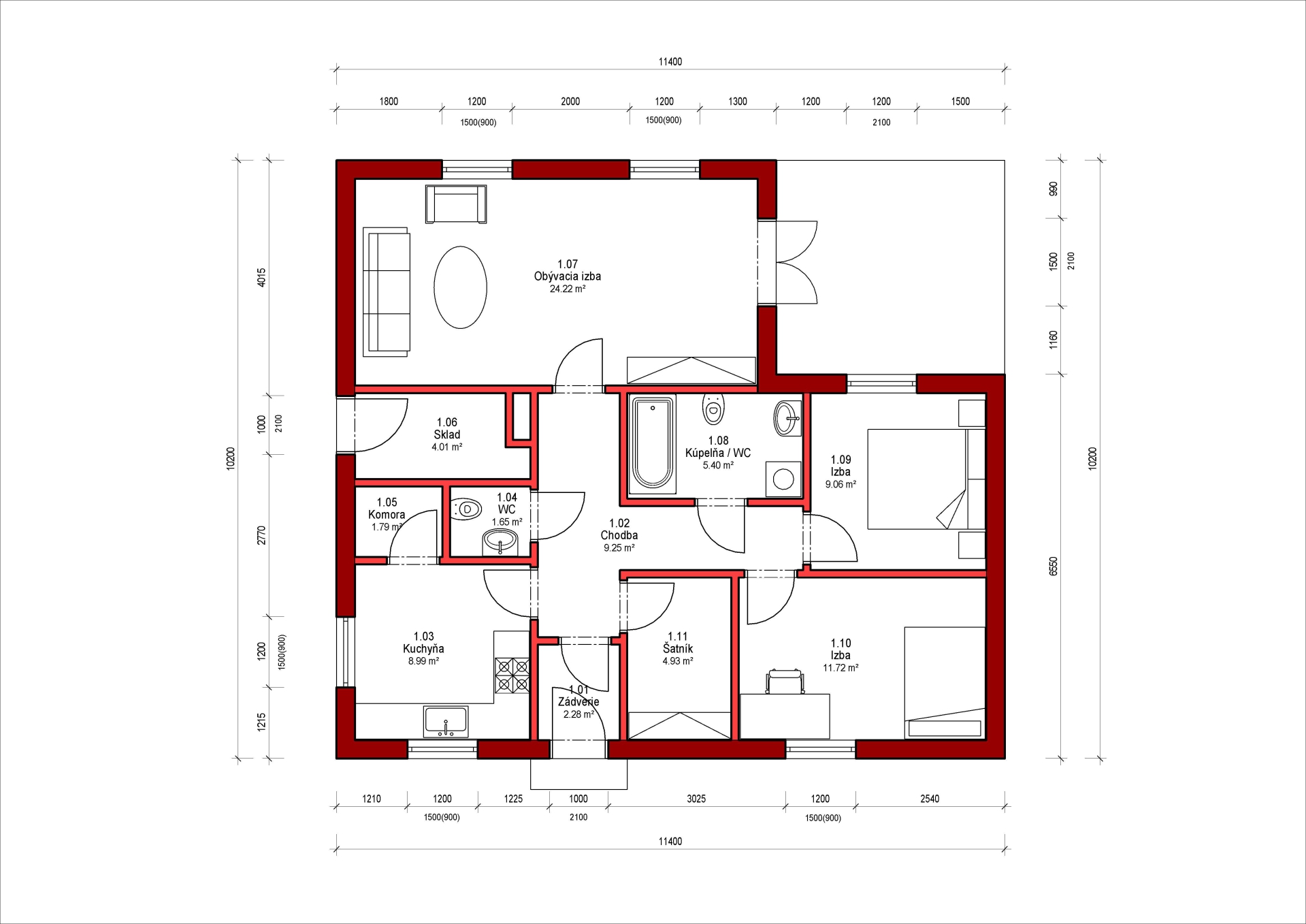 • Cena projektu domu 1150 €