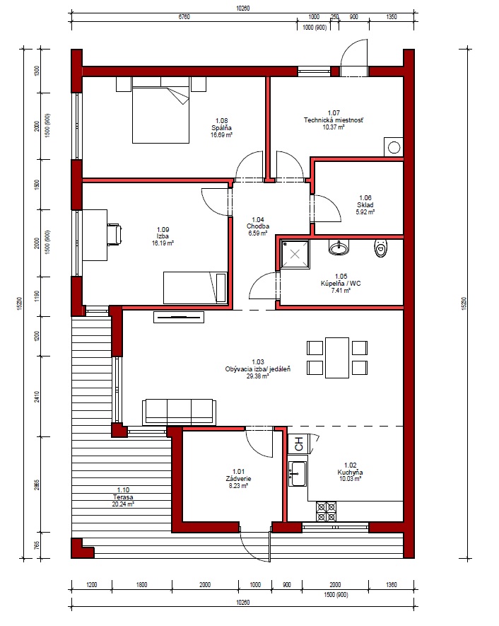 Cena výstavby uvedená pri projekte je za prevedenie kategórie A1 na kľúč, bez interiérového vybavenia, bez základov. Pre viac informácií a aktualizáciu ceny nás prosím kontaktujte.