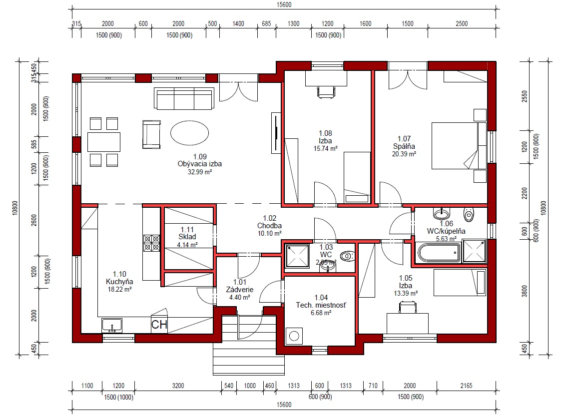 - Šírka domu 11 m