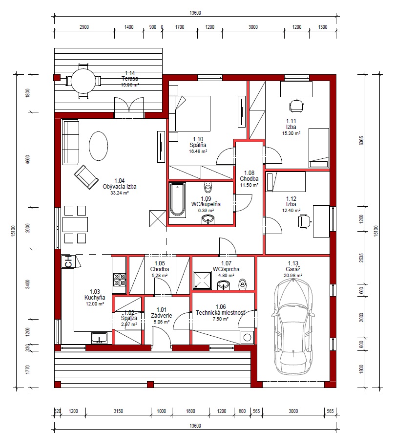 Cena výstavby uvedená pri projekte je za prevedenie kategórie A1 na kľúč, bez interiérového vybavenia, bez základov. Pre viac informácií a aktualizáciu ceny nás prosím kontaktujte.