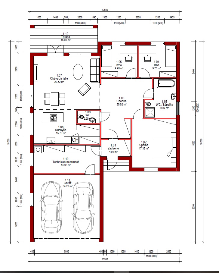 - Šírka domu 14 m