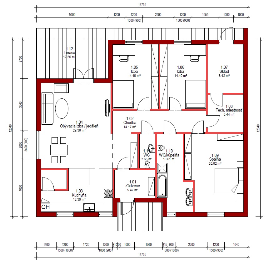 Pri tomto projekte ponúkame MOŽNOSŤ BEZPLATNEJ ZMENY DISPOZÍCIE! Pri každom projekte sme sa snažili vymyslieť tú najlepšiu dispozíciu aká je vzhľadom na vonkajší rozmer domu možná. Ale aj napriek tomu je často potrebné dispozíciu domu upraviť s ohľadom na osadenie domu na pozemok, preferencie klienta alebo stavebný systém. Ponúkame Vám preto možnosť bezplatnej zmeny dispozície každého nášho projektu tak aby vyhovoval vašim potrebám. Zmenou dispozície myslíme posuny nenosných priečok, zmenu umiestnenia a veľkosti okien, interiérových dverí a rozvodov inštalácií.
