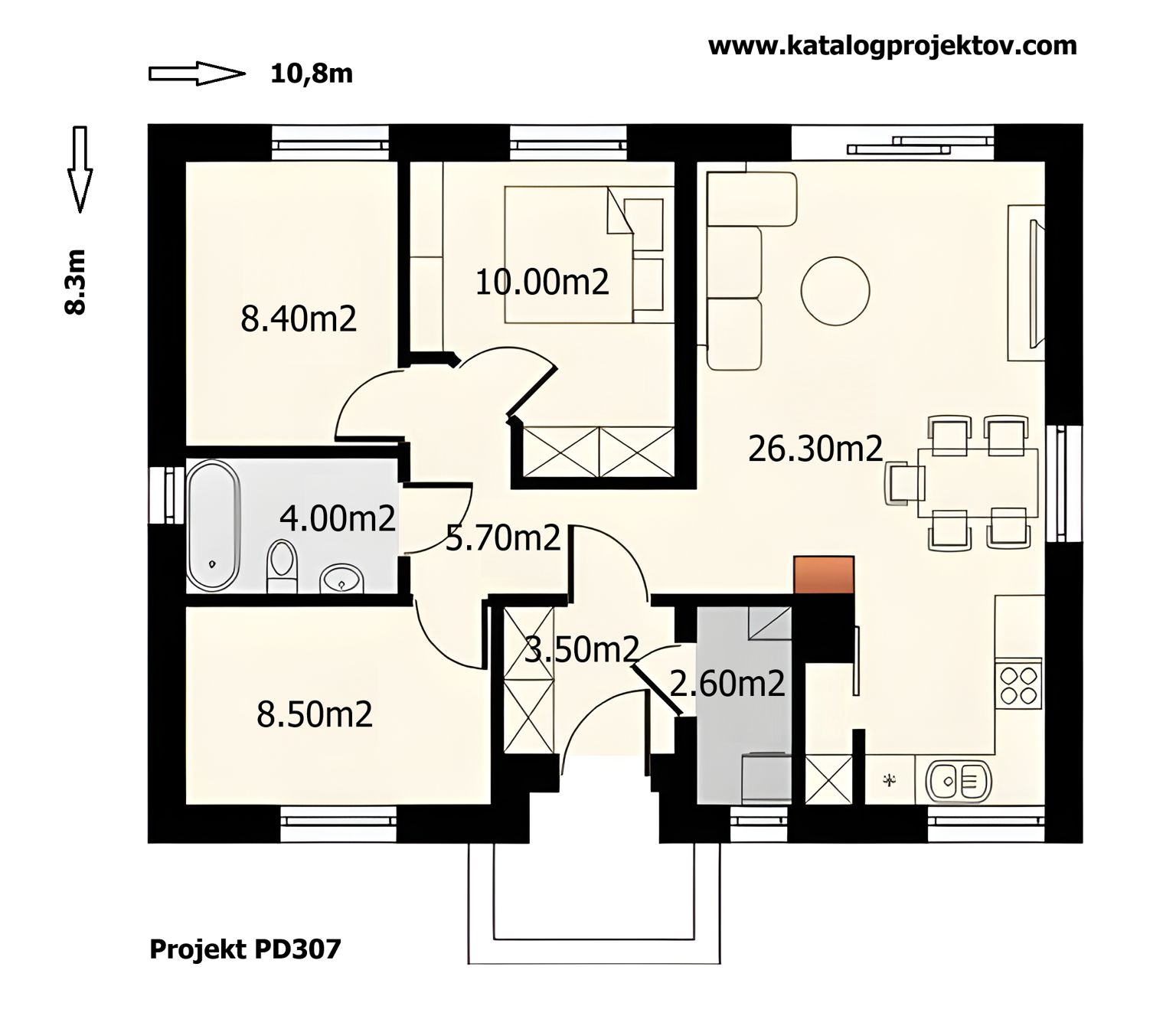 Cena výstavby uvedená pri projekte je za prevedenie kategórie A1 na kľúč, bez interiérového vybavenia, bez základov. Pre viac informácií a aktualizáciu ceny nás prosím kontaktujte.