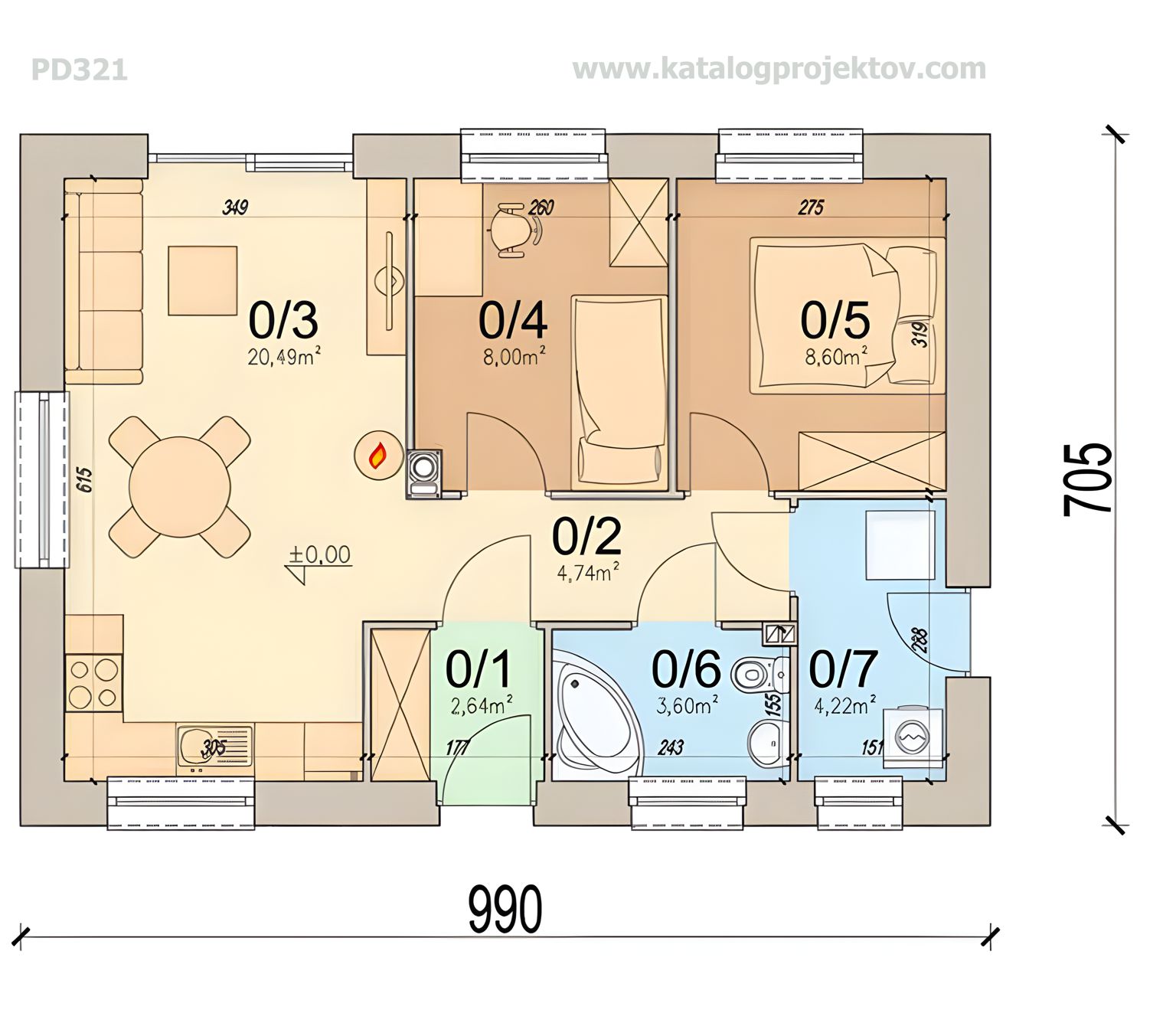 - Cena projektu domu 990 €