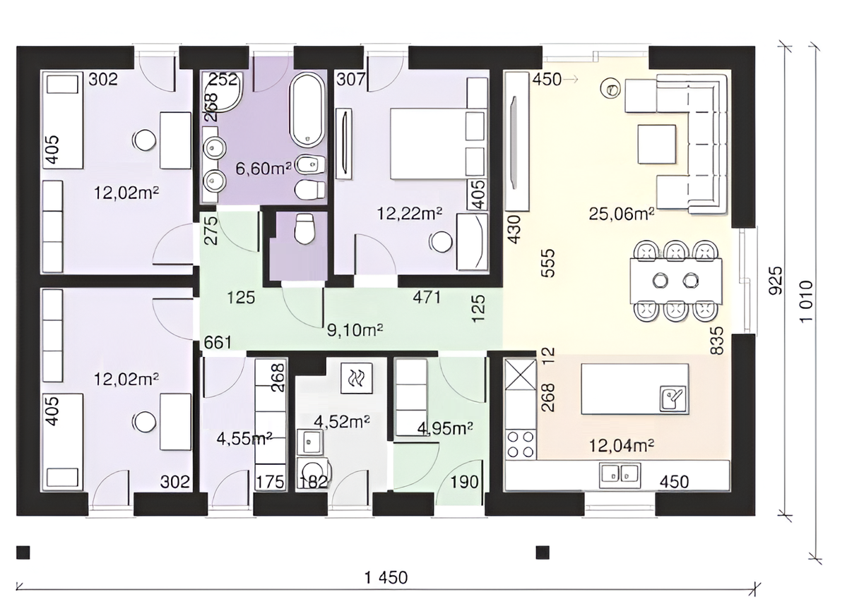 Pri tomto projekte ponúkame MOŽNOSŤ BEZPLATNEJ ZMENY DISPOZÍCIE! Všetky projekty je možné dodať ako energetickú triedu A0 alebo A1. Pri každom projekte sme sa snažili vymyslieť tú najlepšiu dispozíciu aká je vzhľadom na vonkajší rozmer domu možná. Ale aj napriek tomu je často potrebné dispozíciu domu upraviť s ohľadom na osadenie domu na pozemok, preferencie klienta alebo stavebný systém. Ponúkame Vám preto možnosť bezplatnej zmeny dispozície každého nášho projektu tak aby vyhovoval vašim potrebám. Zmenou dispozície myslíme posuny nenosných priečok, zmenu umiestnenia a veľkosti okien, interiérových dverí a rozvodov inštalácií. Cena výstavby uvedená pri projekte je za prevedenie kategórie A1 na kľúč, bez interiérového vybavenia, bez základov. Pre viac informácií a aktualizáciu ceny nás prosím kontaktujte.
