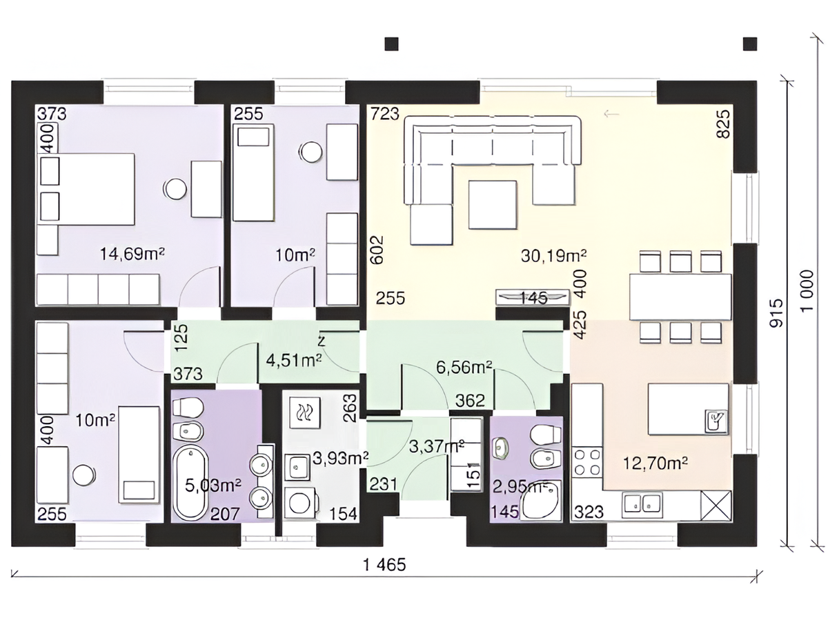 Pri tomto projekte ponúkame MOŽNOSŤ BEZPLATNEJ ZMENY DISPOZÍCIE! Všetky projekty je možné dodať ako energetickú triedu A0 alebo A1. Pri každom projekte sme sa snažili vymyslieť tú najlepšiu dispozíciu aká je vzhľadom na vonkajší rozmer domu možná. Ale aj napriek tomu je často potrebné dispozíciu domu upraviť s ohľadom na osadenie domu na pozemok, preferencie klienta alebo stavebný systém. Ponúkame Vám preto možnosť bezplatnej zmeny dispozície každého nášho projektu tak aby vyhovoval vašim potrebám. Zmenou dispozície myslíme posuny nenosných priečok, zmenu umiestnenia a veľkosti okien, interiérových dverí a rozvodov inštalácií. Cena výstavby uvedená pri projekte je za prevedenie kategórie A1 na kľúč, bez interiérového vybavenia, bez základov. Pre viac informácií a aktualizáciu ceny nás prosím kontaktujte.