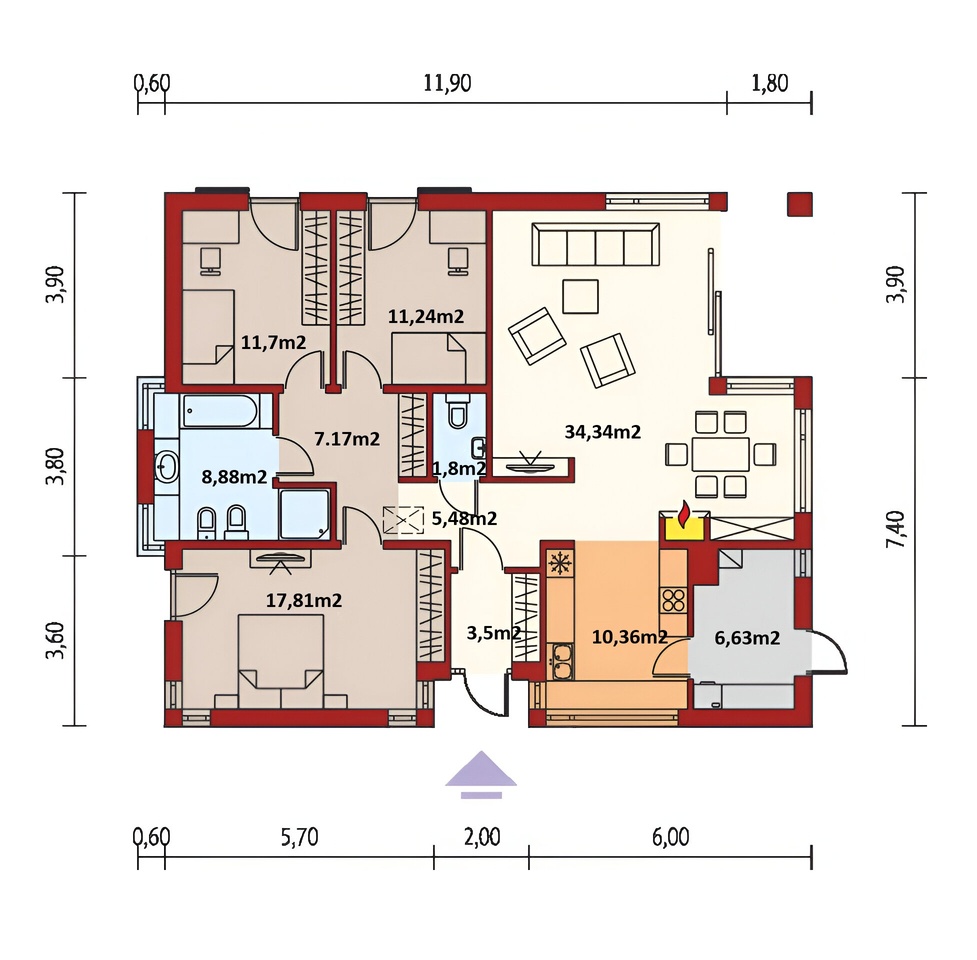 - Zastavaná plocha domu 148 m2