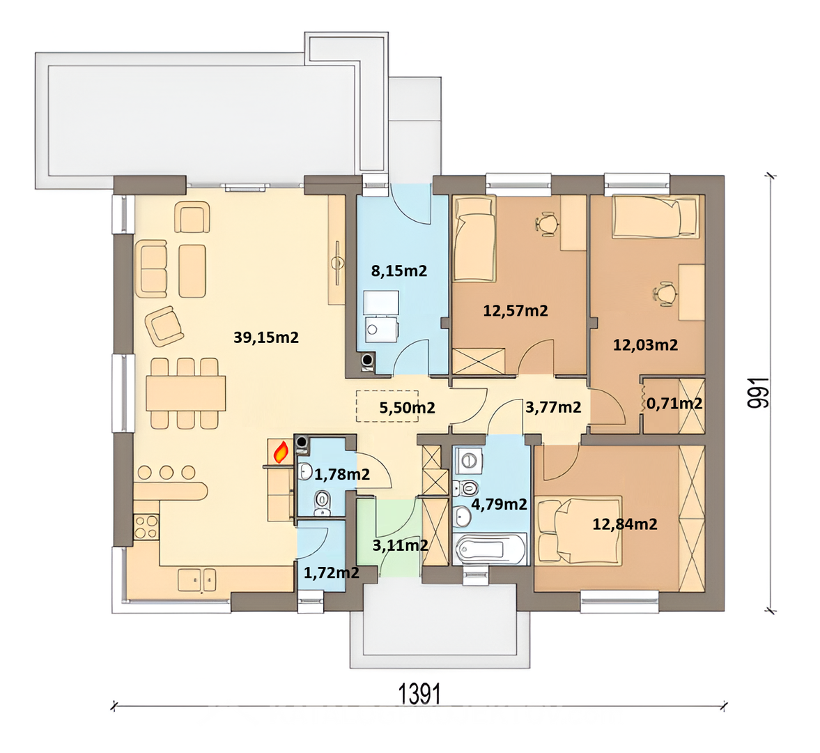 Pri tomto projekte ponúkame MOŽNOSŤ BEZPLATNEJ ZMENY DISPOZÍCIE! Všetky projekty je možné dodať ako energetickú triedu A0 alebo A1. Pri každom projekte sme sa snažili vymyslieť tú najlepšiu dispozíciu aká je vzhľadom na vonkajší rozmer domu možná. Ale aj napriek tomu je často potrebné dispozíciu domu upraviť s ohľadom na osadenie domu na pozemok, preferencie klienta alebo stavebný systém. Ponúkame Vám preto možnosť bezplatnej zmeny dispozície každého nášho projektu tak aby vyhovoval vašim potrebám. Zmenou dispozície myslíme posuny nenosných priečok, zmenu umiestnenia a veľkosti okien, interiérových dverí a rozvodov inštalácií. Cena výstavby uvedená pri projekte je za prevedenie kategórie A1 na kľúč, bez interiérového vybavenia, bez základov. Pre viac informácií a aktualizáciu ceny nás prosím kontaktujte.