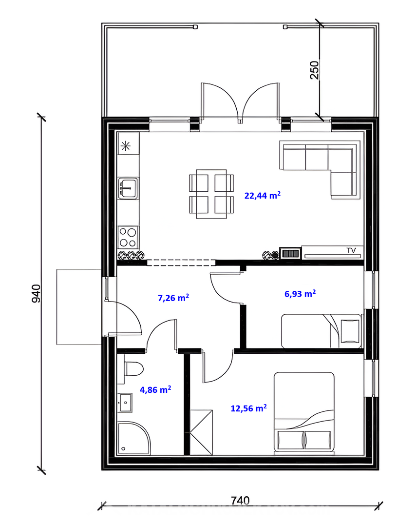 - Šírka domu 7 m