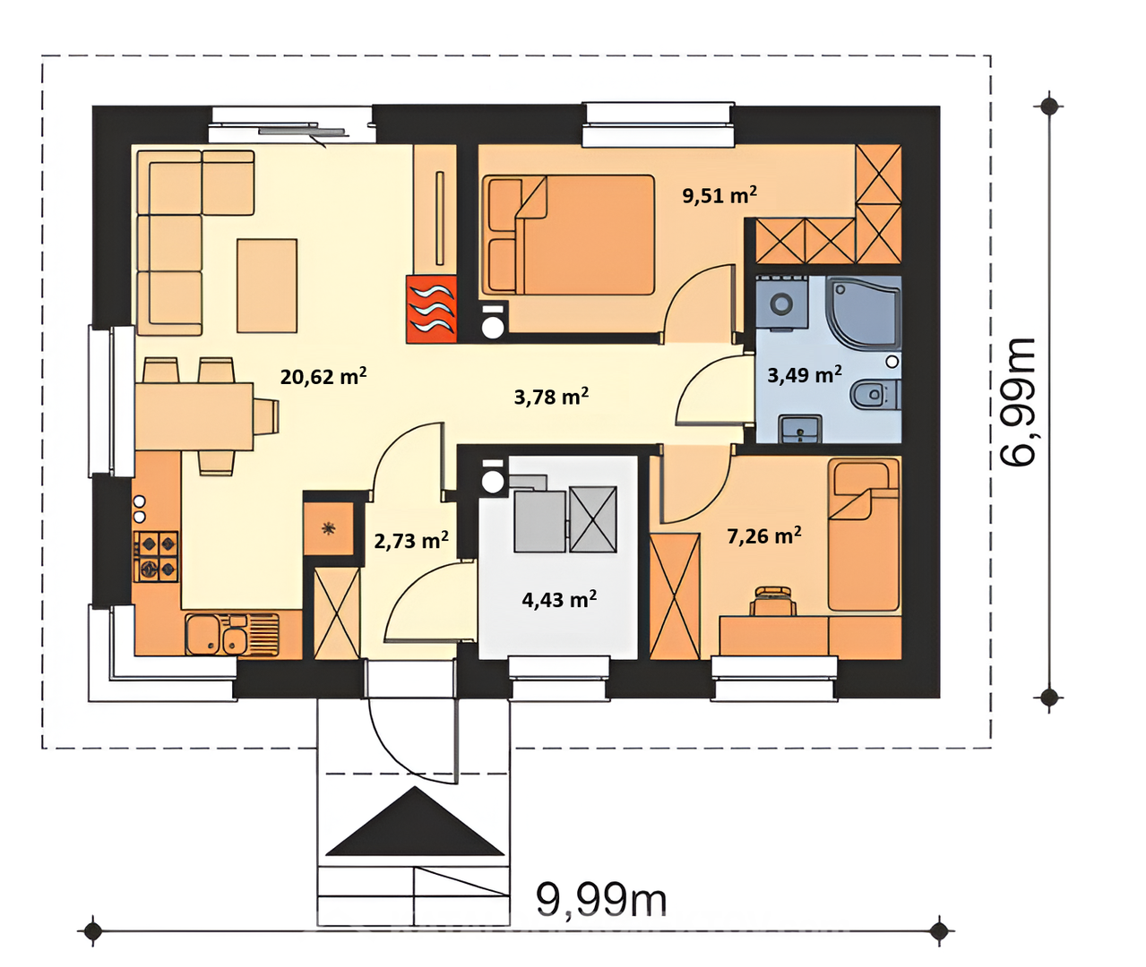 - Zastavaná plocha domu 70 m2
