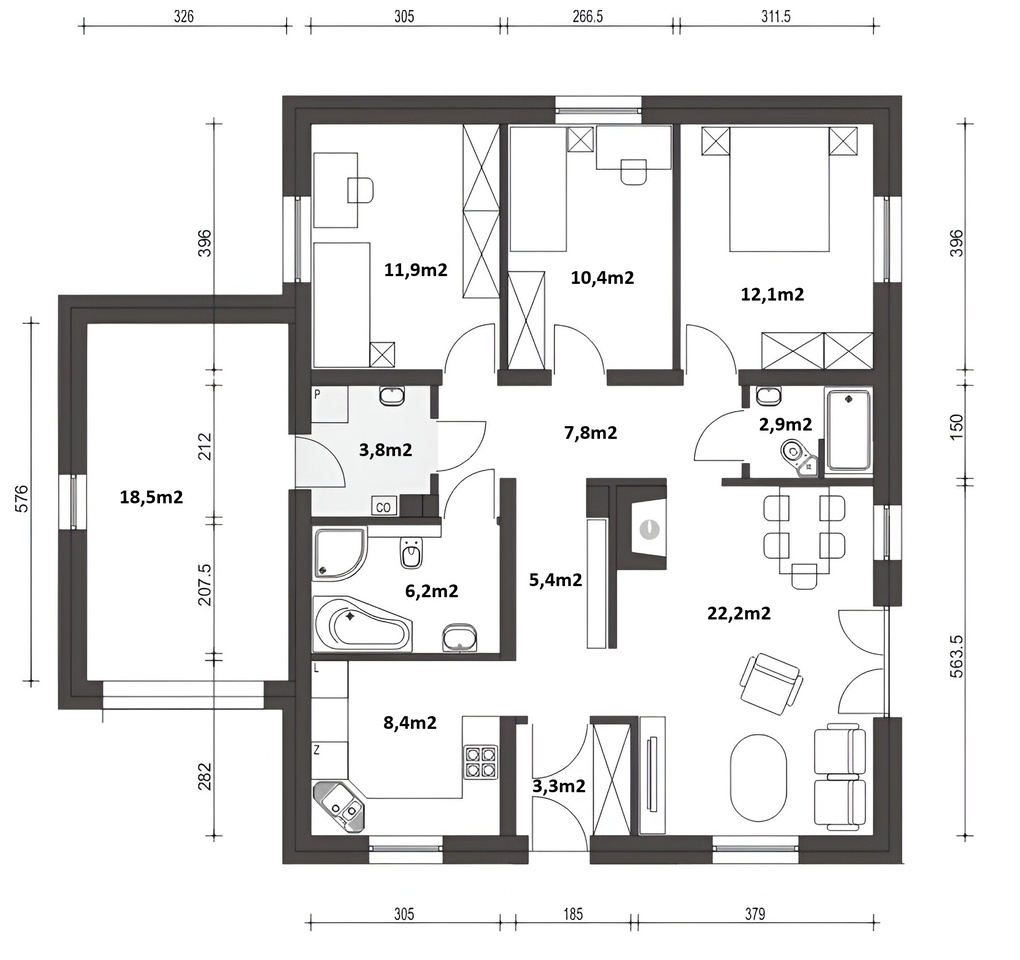 Pri tomto projekte ponúkame MOŽNOSŤ BEZPLATNEJ ZMENY DISPOZÍCIE! Všetky projekty je možné dodať ako energetickú triedu A0 alebo A1. Pri každom projekte sme sa snažili vymyslieť tú najlepšiu dispozíciu aká je vzhľadom na vonkajší rozmer domu možná. Ale aj napriek tomu je často potrebné dispozíciu domu upraviť s ohľadom na osadenie domu na pozemok, preferencie klienta alebo stavebný systém. Ponúkame Vám preto možnosť bezplatnej zmeny dispozície každého nášho projektu tak aby vyhovoval vašim potrebám. Zmenou dispozície myslíme posuny nenosných priečok, zmenu umiestnenia a veľkosti okien, interiérových dverí a rozvodov inštalácií. Cena výstavby uvedená pri projekte je za prevedenie kategórie A1 na kľúč, bez interiérového vybavenia, bez základov. Pre viac informácií a aktualizáciu ceny nás prosím kontaktujte.