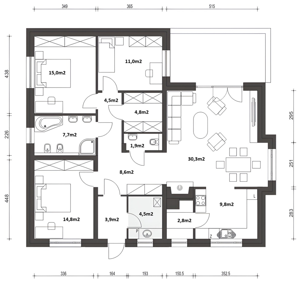 Pri tomto projekte ponúkame MOŽNOSŤ BEZPLATNEJ ZMENY DISPOZÍCIE! Všetky projekty je možné dodať ako energetickú triedu A0 alebo A1. Pri každom projekte sme sa snažili vymyslieť tú najlepšiu dispozíciu aká je vzhľadom na vonkajší rozmer domu možná. Ale aj napriek tomu je často potrebné dispozíciu domu upraviť s ohľadom na osadenie domu na pozemok, preferencie klienta alebo stavebný systém. Ponúkame Vám preto možnosť bezplatnej zmeny dispozície každého nášho projektu tak aby vyhovoval vašim potrebám. Zmenou dispozície myslíme posuny nenosných priečok, zmenu umiestnenia a veľkosti okien, interiérových dverí a rozvodov inštalácií. Cena výstavby uvedená pri projekte je za prevedenie kategórie A1 na kľúč, bez interiérového vybavenia, bez základov. Pre viac informácií a aktualizáciu ceny nás prosím kontaktujte.