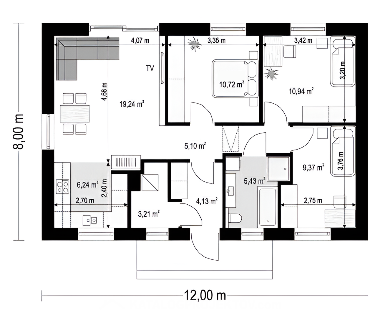 - Zastavaná plocha domu 96 m2