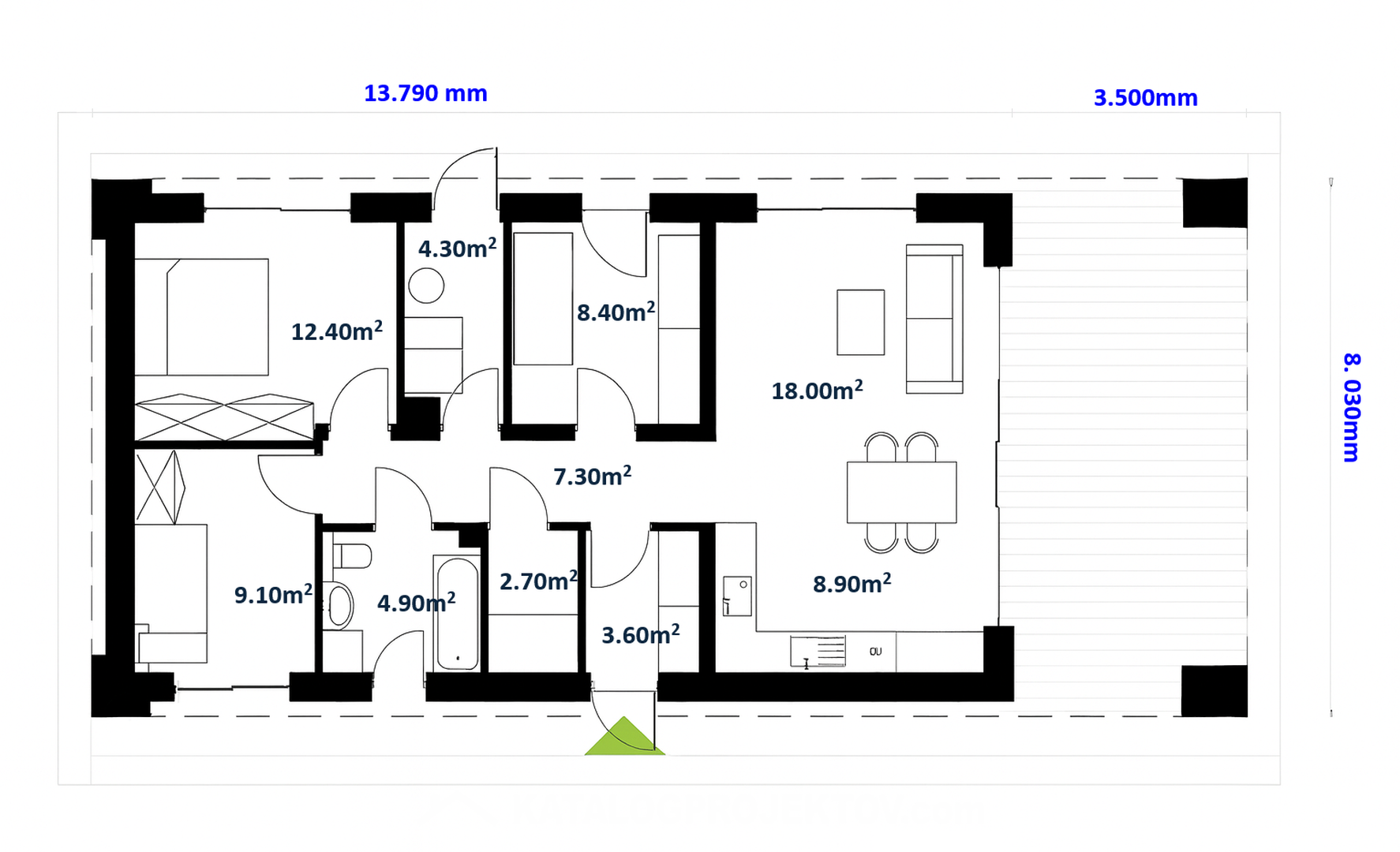 - Šírka domu 8 m