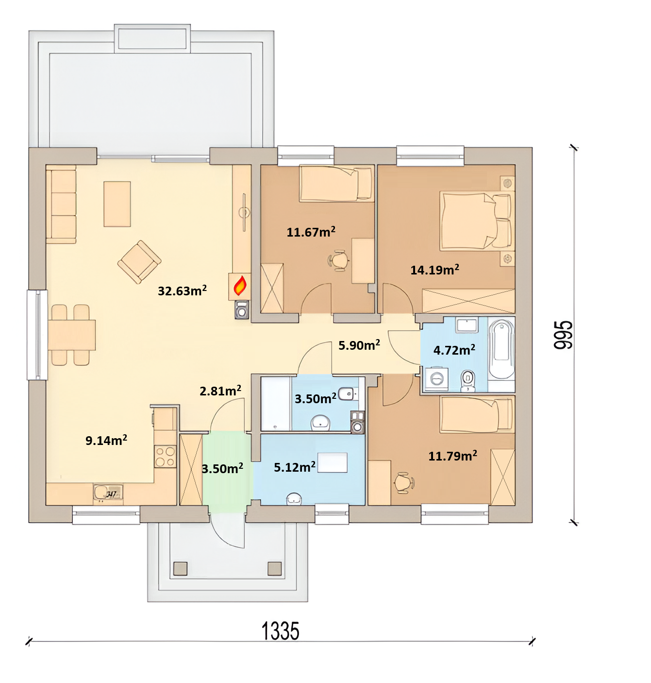 • Zastavaná plocha domu 133 m2