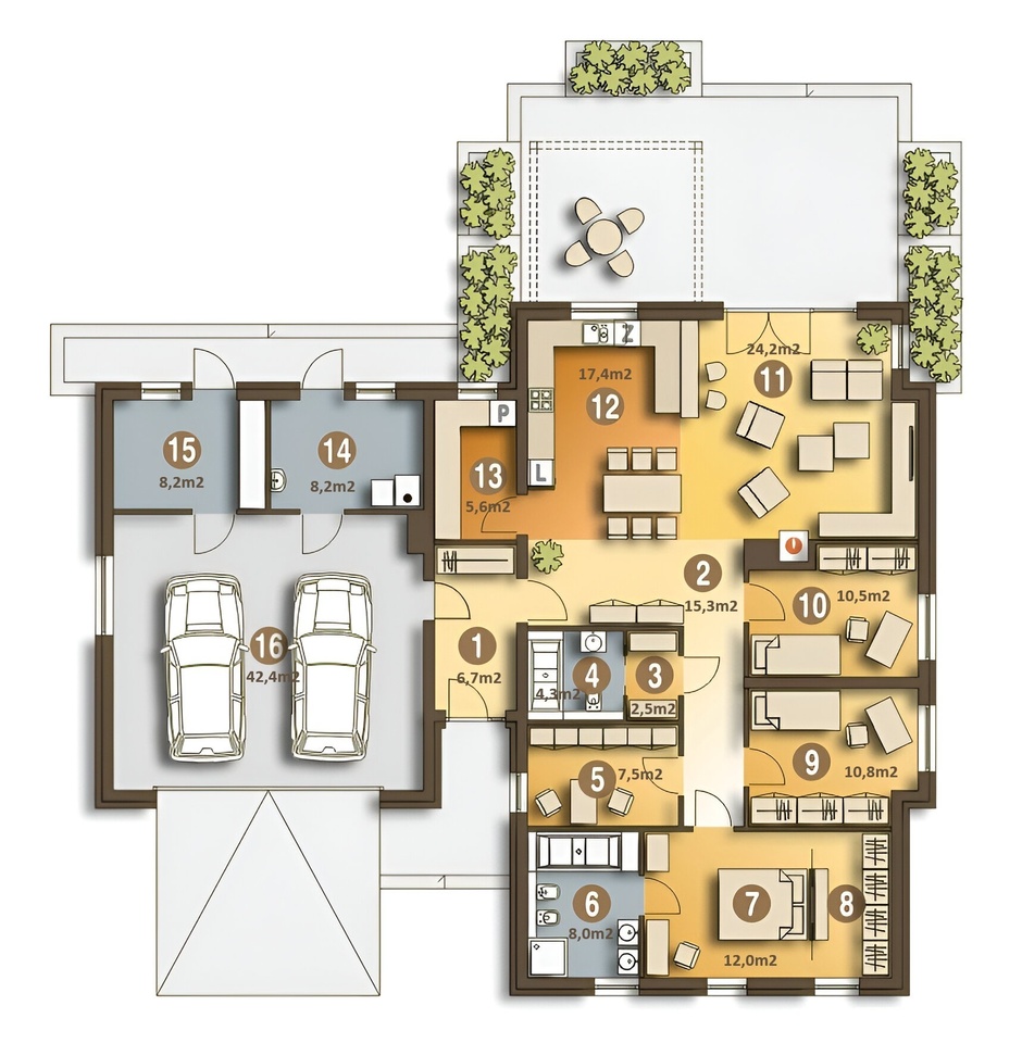 Pri tomto projekte ponúkame MOŽNOSŤ BEZPLATNEJ ZMENY DISPOZÍCIE! Všetky projekty je možné dodať ako energetickú triedu A0 alebo A1. Pri každom projekte sme sa snažili vymyslieť tú najlepšiu dispozíciu aká je vzhľadom na vonkajší rozmer domu možná. Ale aj napriek tomu je často potrebné dispozíciu domu upraviť s ohľadom na osadenie domu na pozemok, preferencie klienta alebo stavebný systém. Ponúkame Vám preto možnosť bezplatnej zmeny dispozície každého nášho projektu tak aby vyhovoval vašim potrebám. Zmenou dispozície myslíme posuny nenosných priečok, zmenu umiestnenia a veľkosti okien, interiérových dverí a rozvodov inštalácií. Cena výstavby uvedená pri projekte je za prevedenie kategórie A1 na kľúč, bez interiérového vybavenia, bez základov. Pre viac informácií a aktualizáciu ceny nás prosím kontaktujte.