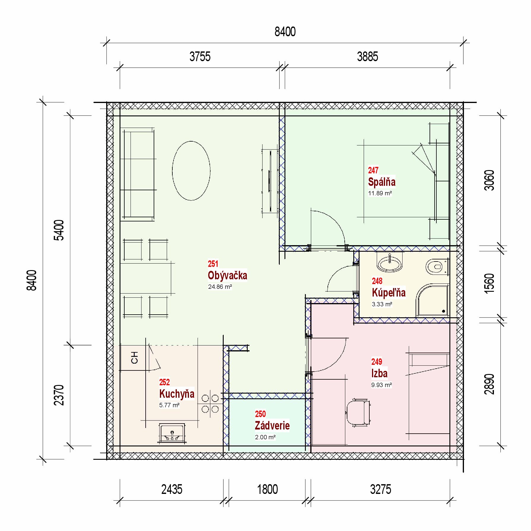 - Zastavaná plocha domu 66 m2