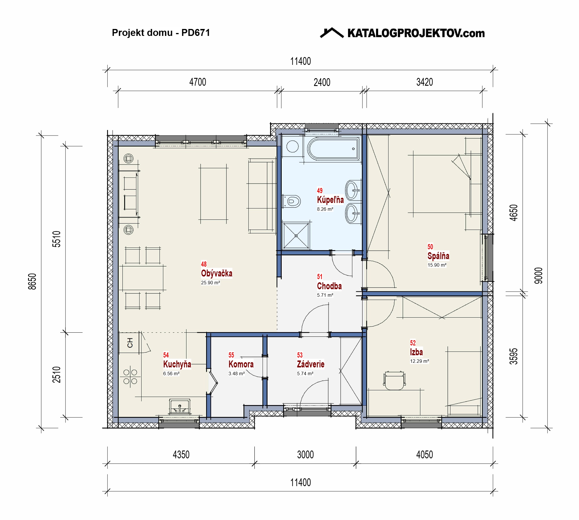 Cena výstavby uvedená pri projekte je za prevedenie kategórie A1 na kľúč, bez interiérového vybavenia, bez základov. Pre viac informácií a aktualizáciu ceny nás prosím kontaktujte.