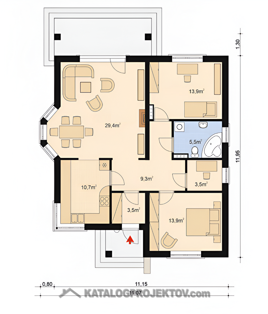 - Šírka domu 11 m