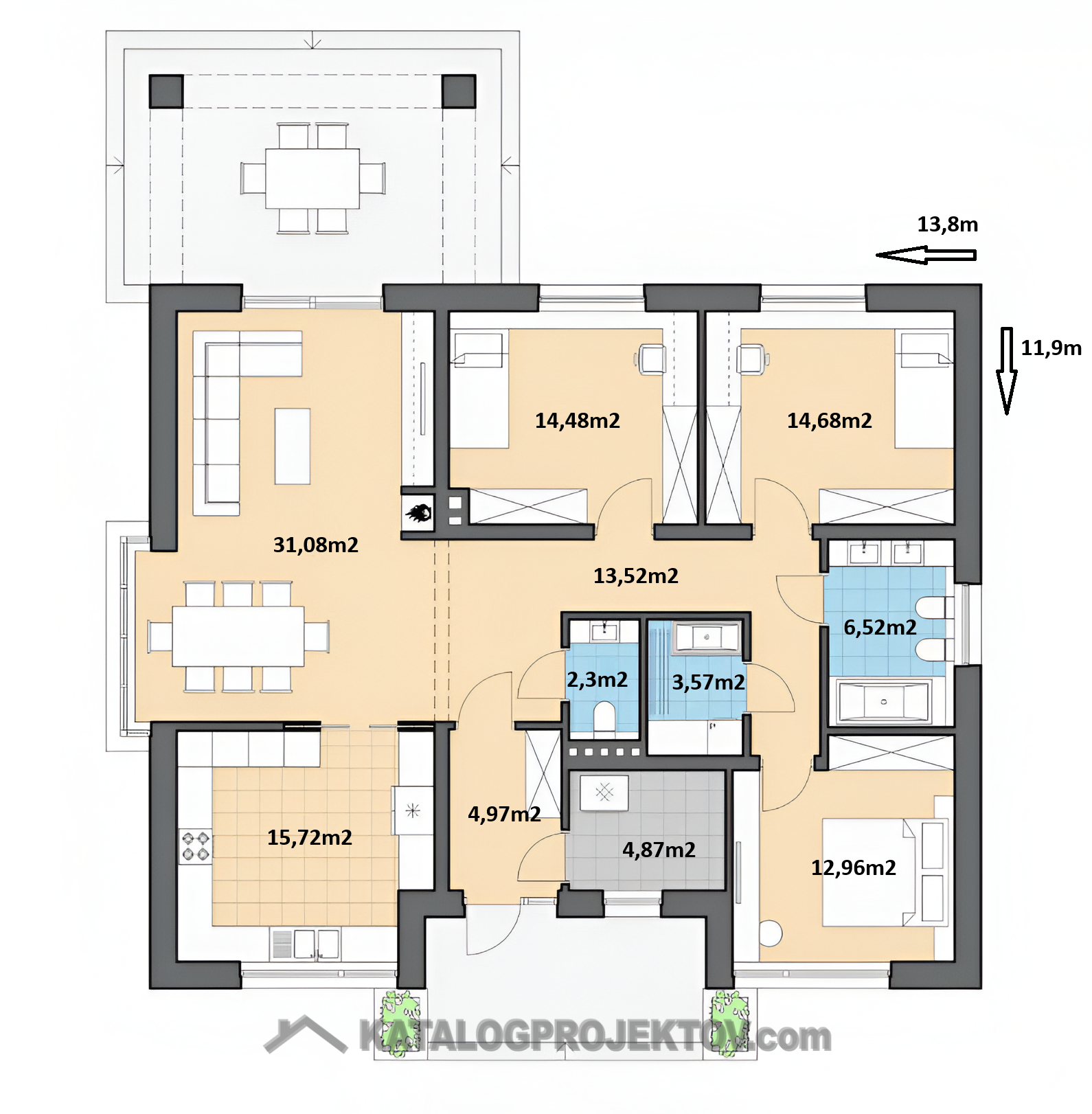- Zastavaná plocha domu 156 m2