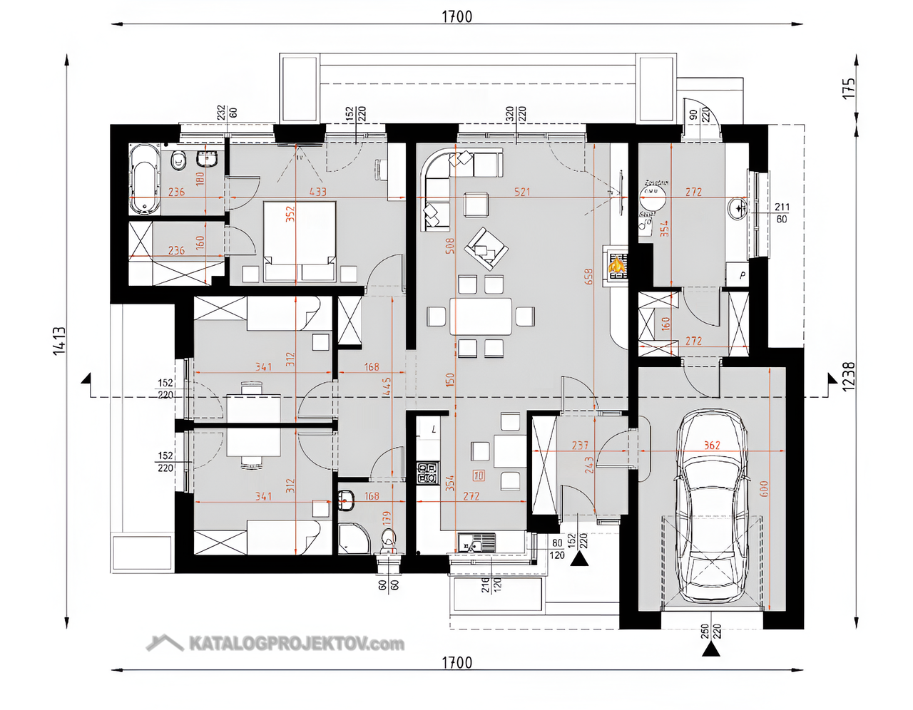 Cena výstavby uvedená pri projekte je za prevedenie kategórie A1 na kľúč, bez interiérového vybavenia, bez základov. Pre viac informácií a aktualizáciu ceny nás prosím kontaktujte.