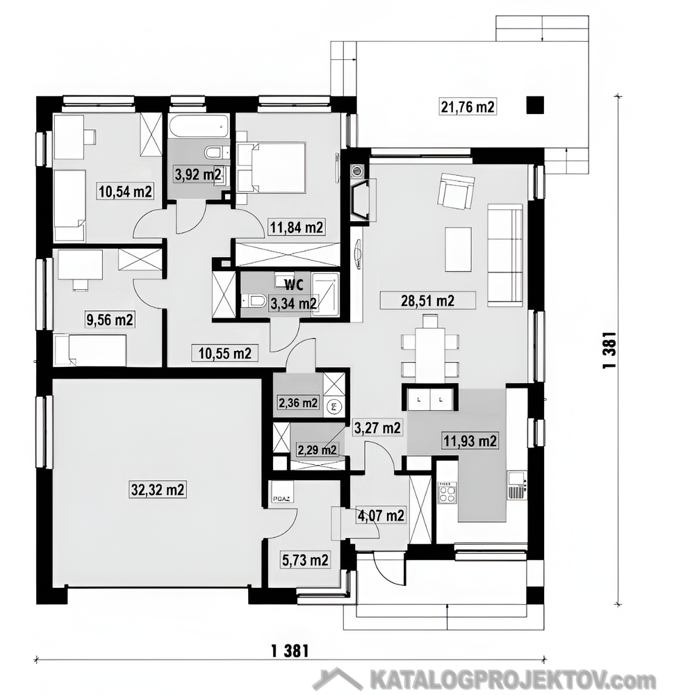 Pri tomto projekte ponúkame MOŽNOSŤ BEZPLATNEJ ZMENY DISPOZÍCIE! Pri každom projekte sme sa snažili vymyslieť tú najlepšiu dispozíciu aká je vzhľadom na vonkajší rozmer domu možná. Ale aj napriek tomu je často potrebné dispozíciu domu upraviť s ohľadom na osadenie domu na pozemok, preferencie klienta alebo stavebný systém. Ponúkame Vám preto možnosť bezplatnej zmeny dispozície každého nášho projektu tak aby vyhovoval vašim potrebám. Zmenou dispozície myslíme posuny nenosných priečok, zmenu umiestnenia a veľkosti okien, interiérových dverí a rozvodov inštalácií.