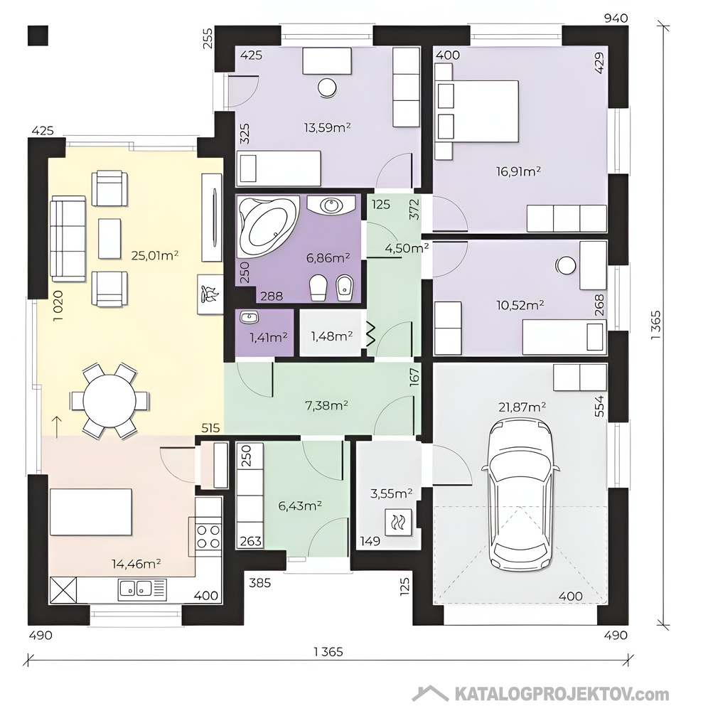 Cena výstavby uvedená pri projekte je za prevedenie kategórie A1 na kľúč, bez interiérového vybavenia, bez základov. Pre viac informácií a aktualizáciu ceny nás prosím kontaktujte.