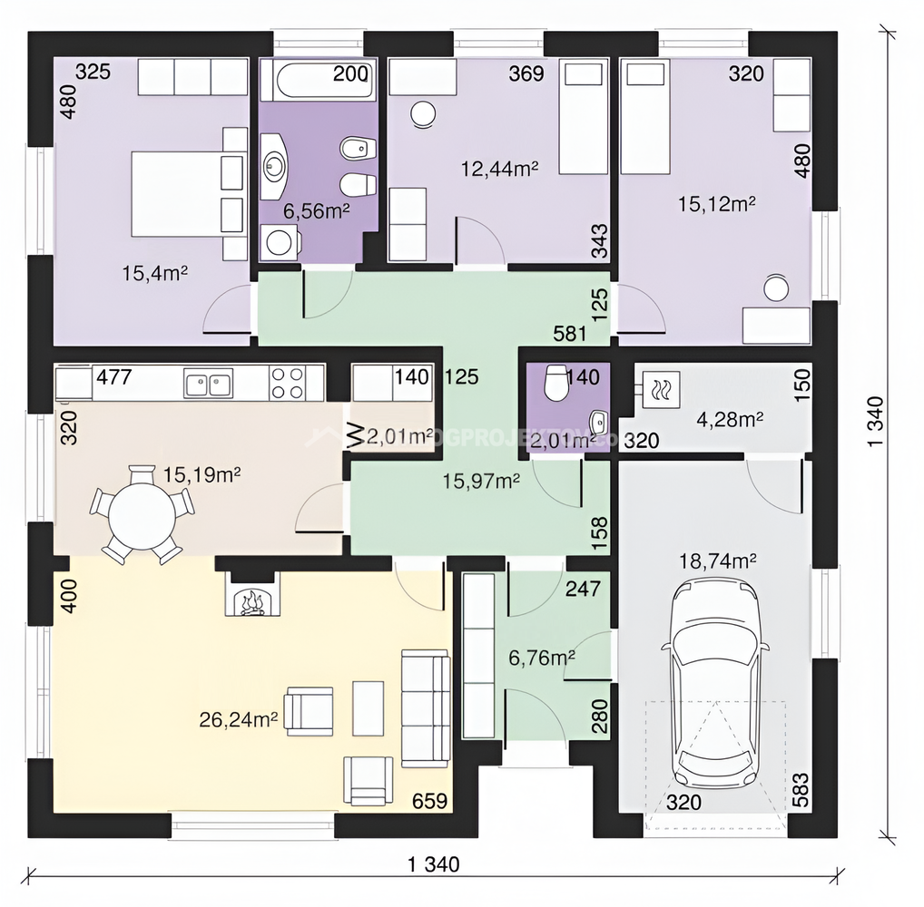 Pri tomto projekte ponúkame MOŽNOSŤ BEZPLATNEJ ZMENY DISPOZÍCIE! Pri každom projekte sme sa snažili vymyslieť tú najlepšiu dispozíciu aká je vzhľadom na vonkajší rozmer domu možná. Ale aj napriek tomu je často potrebné dispozíciu domu upraviť s ohľadom na osadenie domu na pozemok, preferencie klienta alebo stavebný systém. Ponúkame Vám preto možnosť bezplatnej zmeny dispozície každého nášho projektu tak aby vyhovoval vašim potrebám. Zmenou dispozície myslíme posuny nenosných priečok, zmenu umiestnenia a veľkosti okien, interiérových dverí a rozvodov inštalácií.