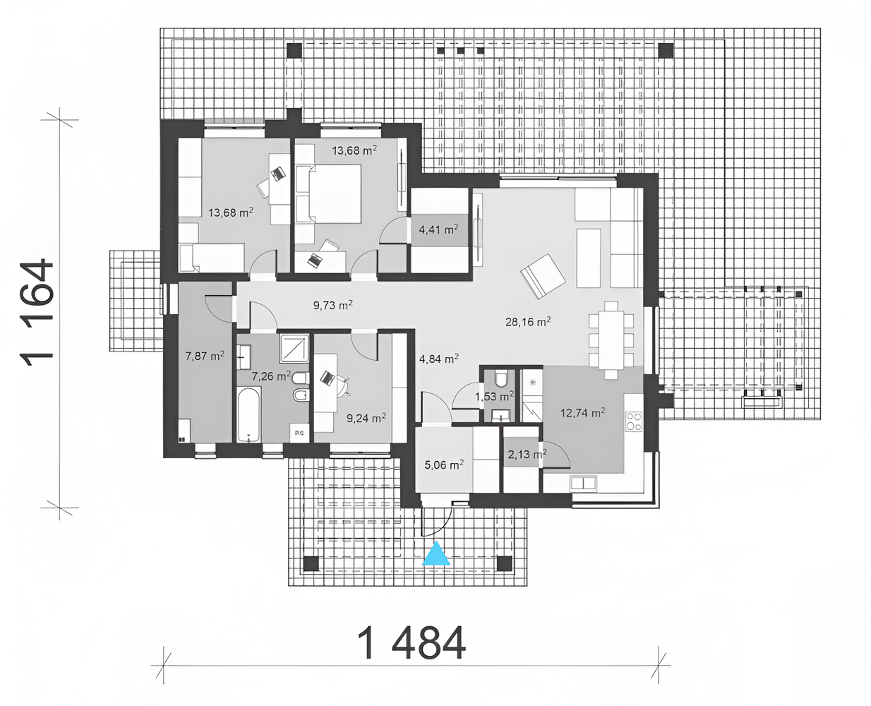 - Zastavaná plocha domu 145 m2
