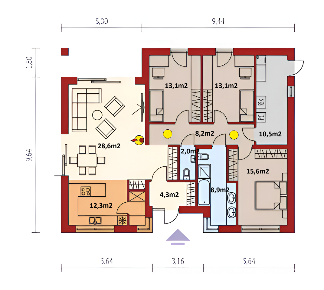 Pri tomto projekte ponúkame MOŽNOSŤ BEZPLATNEJ ZMENY DISPOZÍCIE! Všetky projekty je možné dodať ako energetickú triedu A0 alebo A1. Pri každom projekte sme sa snažili vymyslieť tú najlepšiu dispozíciu aká je vzhľadom na vonkajší rozmer domu možná. Ale aj napriek tomu je často potrebné dispozíciu domu upraviť s ohľadom na osadenie domu na pozemok, preferencie klienta alebo stavebný systém. Ponúkame Vám preto možnosť bezplatnej zmeny dispozície každého nášho projektu tak aby vyhovoval vašim potrebám. Zmenou dispozície myslíme posuny nenosných priečok, zmenu umiestnenia a veľkosti okien, interiérových dverí a rozvodov inštalácií. Cena výstavby uvedená pri projekte je za prevedenie kategórie A1 na kľúč, bez interiérového vybavenia, bez základov. Pre viac informácií a aktualizáciu ceny nás prosím kontaktujte.