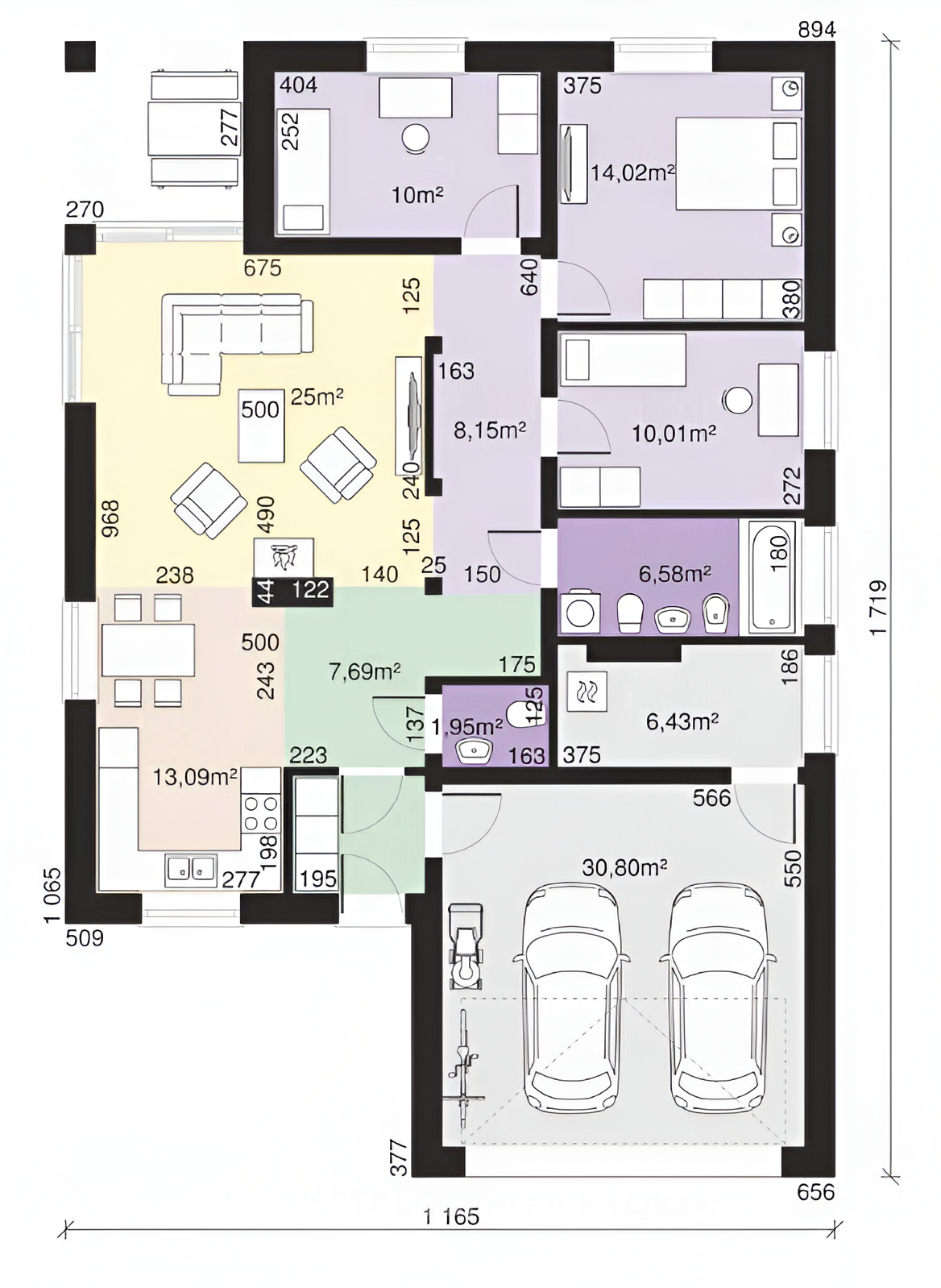 Pri tomto projekte ponúkame MOŽNOSŤ BEZPLATNEJ ZMENY DISPOZÍCIE! Všetky projekty je možné dodať ako energetickú triedu A0 alebo A1. Pri každom projekte sme sa snažili vymyslieť tú najlepšiu dispozíciu aká je vzhľadom na vonkajší rozmer domu možná. Ale aj napriek tomu je často potrebné dispozíciu domu upraviť s ohľadom na osadenie domu na pozemok, preferencie klienta alebo stavebný systém. Ponúkame Vám preto možnosť bezplatnej zmeny dispozície každého nášho projektu tak aby vyhovoval vašim potrebám. Zmenou dispozície myslíme posuny nenosných priečok, zmenu umiestnenia a veľkosti okien, interiérových dverí a rozvodov inštalácií. Cena výstavby uvedená pri projekte je za prevedenie kategórie A1 na kľúč, bez interiérového vybavenia, bez základov. Pre viac informácií a aktualizáciu ceny nás prosím kontaktujte.